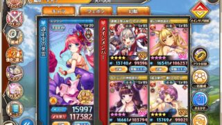 闇属性は現状の構成で苦労がないので、限定キャラをお迎えした時にキャラ構成が変わるぐらいの変更です。今回は限定イリスとアリサをお迎えしたので、4人中2人のメインキャラが変更となりました。